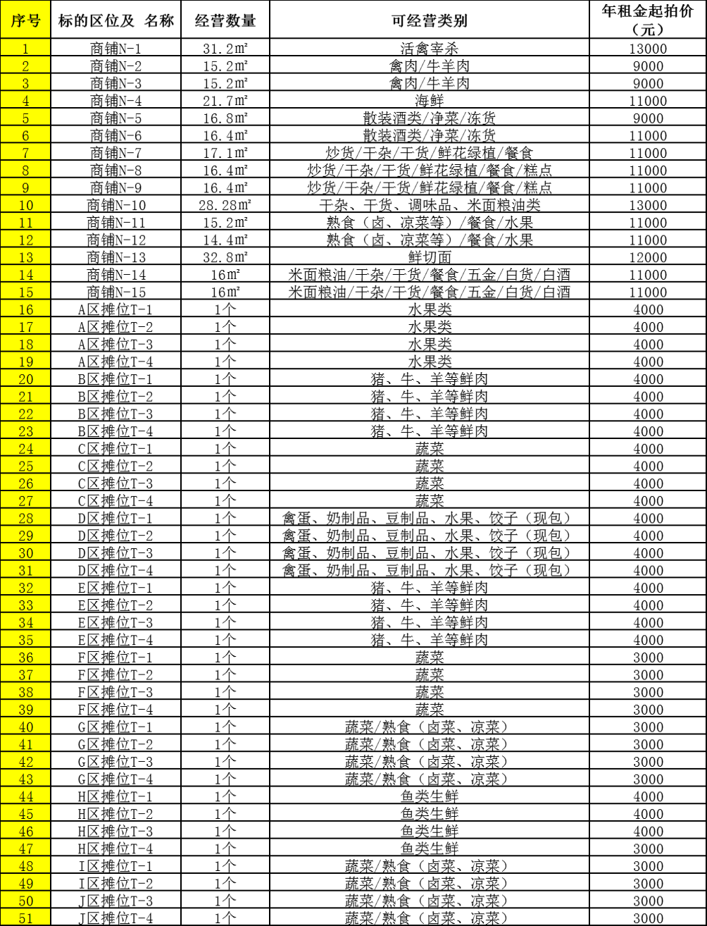 10、市场管理:竞租成交后,所有商铺和摊位必须遵守市场统一管理,各标的须严格按市场规划类别进行经营,不得超范围经营,竞得人自行承担竞得标的水电和市场管理费,租金不含上述费用。