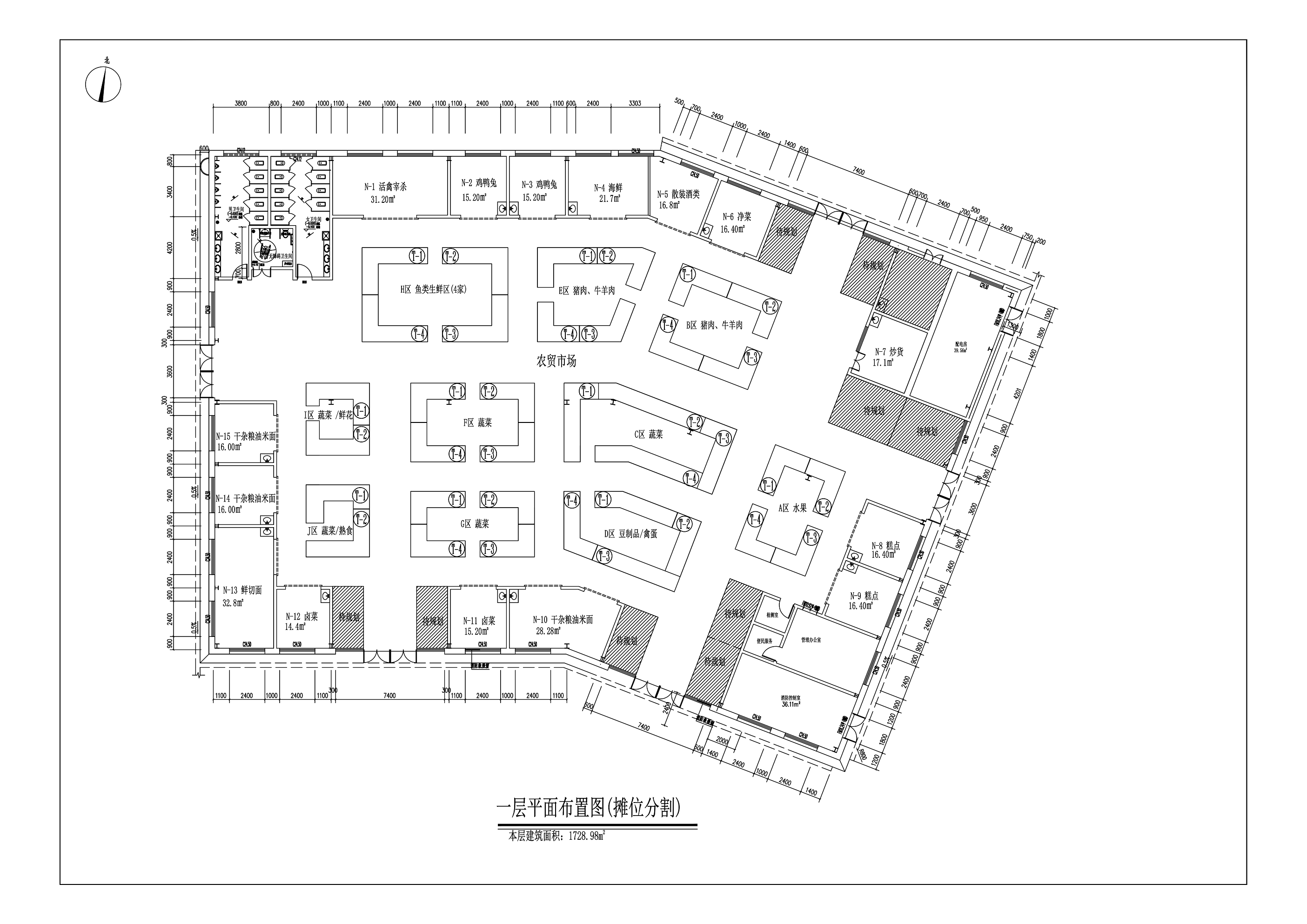 3、竞租状态及展示:标的均按市场交付现状招租,商铺和市场摊位分布以现场编号为准,即日起标的原址现场公开展示。(见市场管理方提供的农贸市场“一层平面布置图(摊位分割)”平面图)。